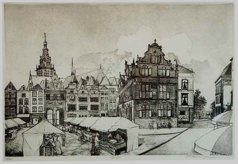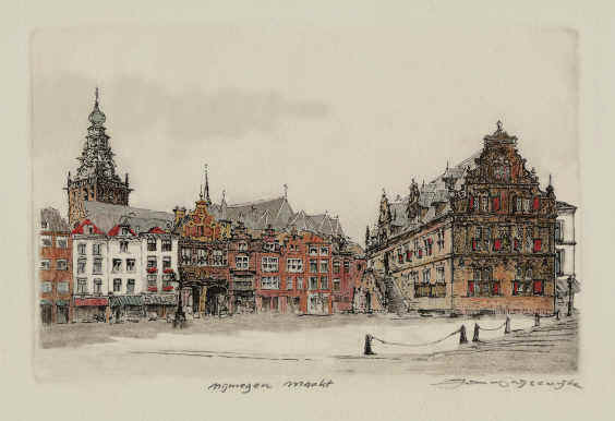 Oude Markt Aquatint ets                                                                                                    C.J. van Rijsewijk