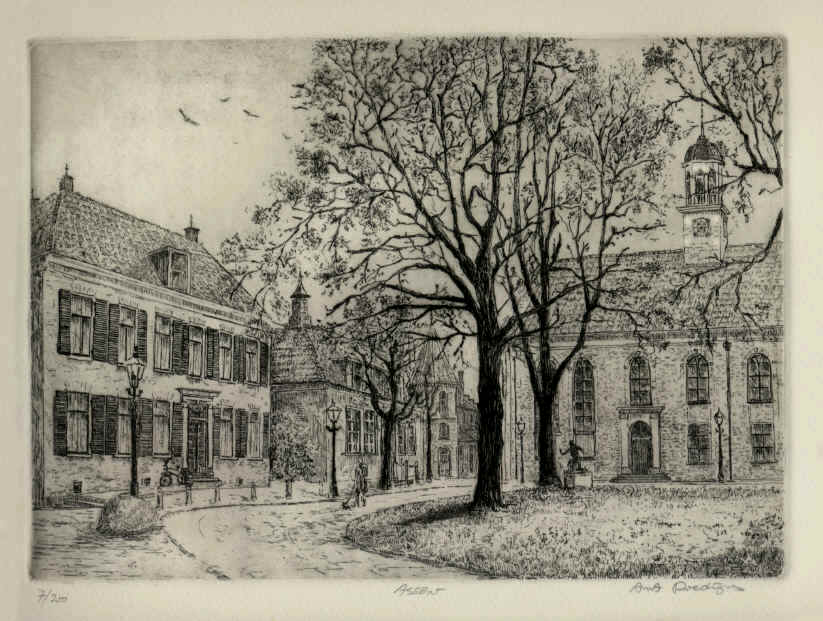 Copyright :© since1978  by  van Rijsewijk and Doedijns who are the  artists that made the original Works of art  pictured here and are the sole publishers of its  reproductions. Copying in any form without their written permission is prohibited  by copyrights protection laws in every country. Alle rechten voorbehouden aan Atelier van Rijsewijk Doedijns .     Handprinted etchings. Uw stad, gebouw, huis als exclusieve serie handgedrukte etsen. Alkmaar, Amersfoort, Amsterdam, Antwerpen, Apeldoorn, Arnhem, Assen, Bolsward, Den Bosch, Den Haag, Breda, Brielle, BudelBussum, Culemborg, Delft, Deventer, Dordrecht, Edam, Ede, Eindhoven, Elburg, Enkhuizen, Enschede, Ettenleur, Geleen, Genemuiden, Gorinchem, Gouda, Groningen, Den Haag, Haarlem, Harderwijk, Hattum, Heerlen, Den Helder, Helmond, Hilversum, Hindeloopen, Hoorn, Huizen, Katwijk, Kampen, Kerkrade, Keulen, Laren, Leeuwarden, Leiden, Lemmer, Maastricht, Maassluis,  Middelburg, Monnickendam, Muiden, Naaldwijk, Naarden, Nijmegen, Neuen Oosterbeek, Oosterhout, Oirschot, Purmerend, Rhenen, Roermond, Roosendaal, Rotterdam, Scheveningen, Schiedam, Schoonhoven, Sittard, Sliedrecht, Sloten, Sneek, Soest, Spakenburg, Steenwijk, Texel, Tiel, Tilburg, Uden, Urk, Utrecht,Valkenswaard, Veenendaal, Veghel, Venlo, Venray,  Vlaardingen, Vlissingen, Volendam, Voorschoten, Vught, Wageningen, Wassenaar, Weert, WorkumWoerden, Zaandam, Zeist, Zutphen, Zwolle, Zwaluwenburg.  Direct van het Atelier mail:  jvr@uwnet.nl  of  bel 0622786744