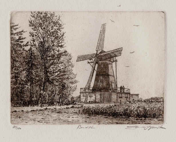 Budel -Schoot, molen Janzona lijn ets 13x18 cm.