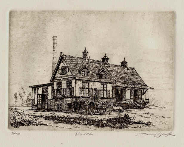 Budel stoomzuivelfabriek lijnets 13x18cm.