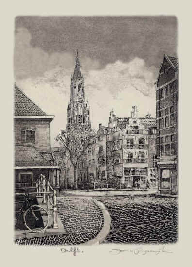 Delft als Giclee-ets 22x30 cm 45 euro compleet