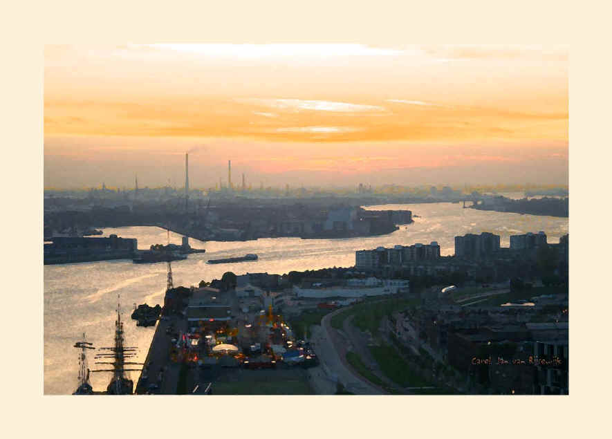 Rotterdam waterweg met kermis genummerde PhotoGiclée elk formaat leverbaar